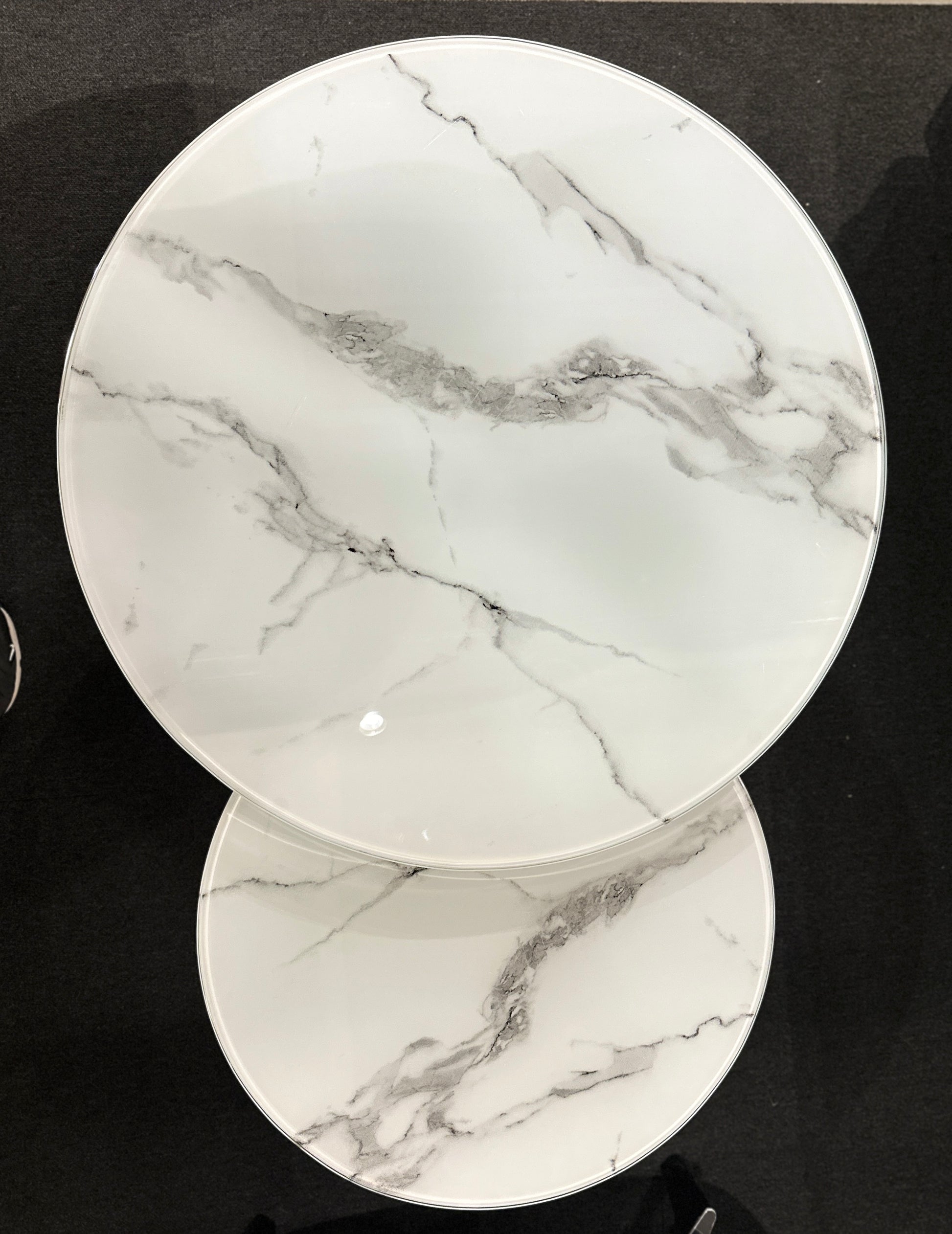 80cm & 60cm Glasplatte mit Marmoroptik - Weiß-Grau / Chrom Metall-Füße